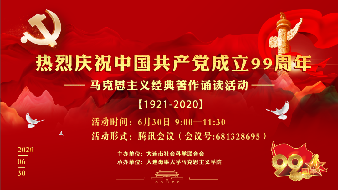 为热烈庆祝中国共产党成立九十九周年,大连市社会科学联合会联合大连海事大学马克思主义学院于6月30日以腾讯会议形式开展马克思主义经典著作诵读活动。