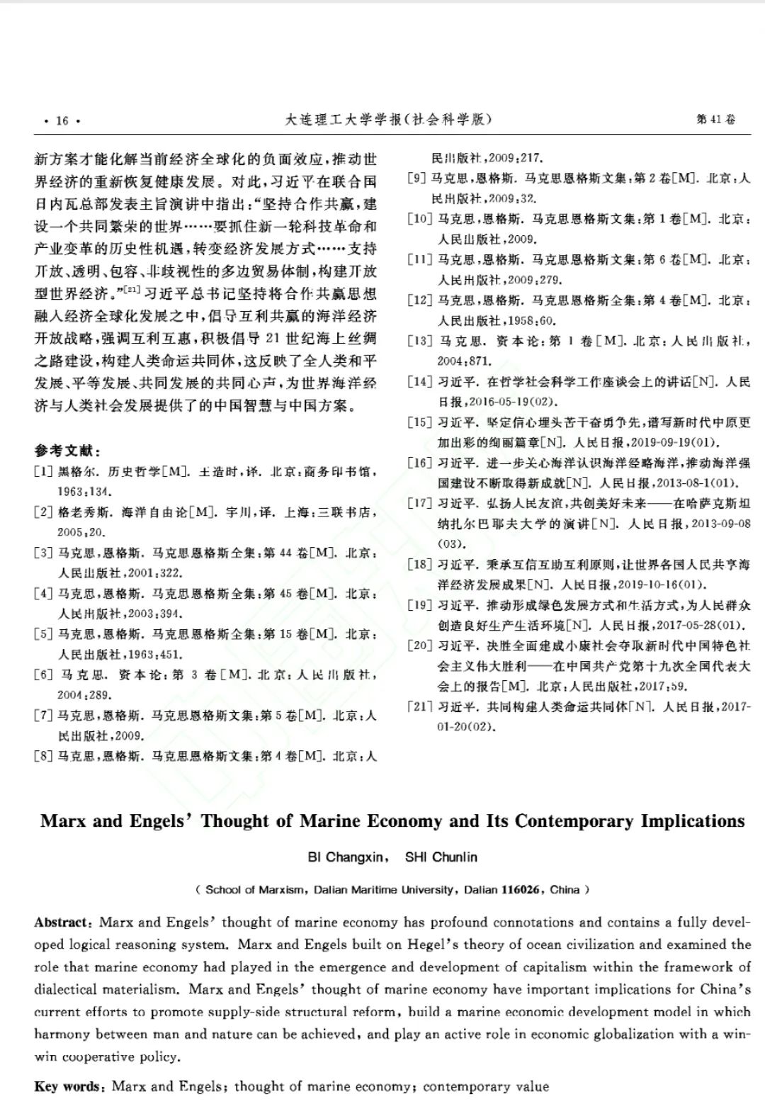 [摘要]马克思恩格斯海洋经济思想具有深刻的内涵与完整的逻辑体系。马克思与恩格斯充分吸收了黑格尔与格老秀斯关于海洋论述的合理性观点,在坚持辩证唯物主义的基础上,深入地探索和思考海洋经济因素在资本主义产生与发展过程中的重要作用。马克思恩格斯海洋经济思想是马克思主义政治经济学的重要组成部分,对于当前我国推动供给侧结构性改革、构建人与自然和谐相处的海洋经济发展模式和以合作共赢思想参与经济全球化具有重要的启示意义。