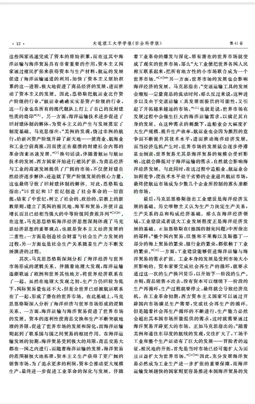 马克思恩格斯;海洋经济思想;