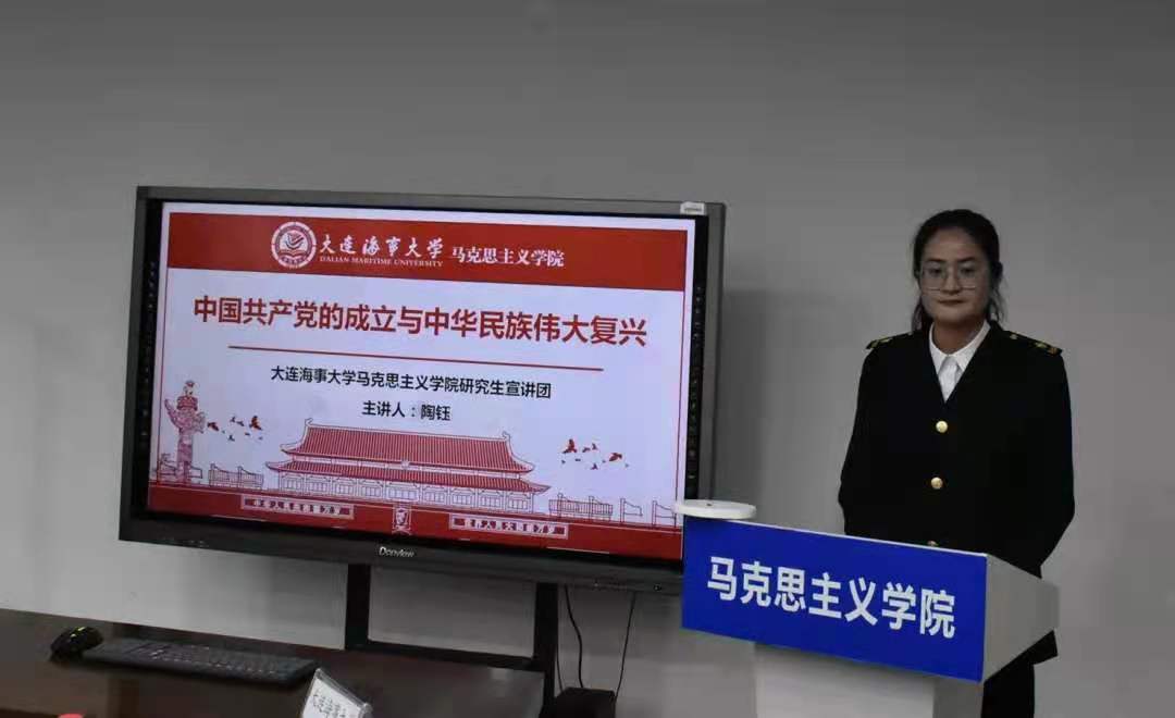 参观海大展馆后,同学们在马院二楼会议室聆听了大连海事大学马克思主义学院研究生宣讲团成员陶钰同学的宣讲。此次宣讲以“开天辟地—中国共产党的诞生”为题,分别从中国共产党的产生条件、产生过程、产生意义三方面详细讲解了中国共产党的伟大诞生。理工大学马院学生代表认真聆听并高度赞扬宣讲团的宣讲水平与能力。他们指出,陶钰同学的宣讲使大家对中国共产党的诞生有了更为深入地了解。学习党史能坚定跟党走的信心,坚定自身文化自信,坚定追逐自己人生道路。同时,这次学习对于理工大学马院宣讲团的建立和发展具有一定借鉴意义。